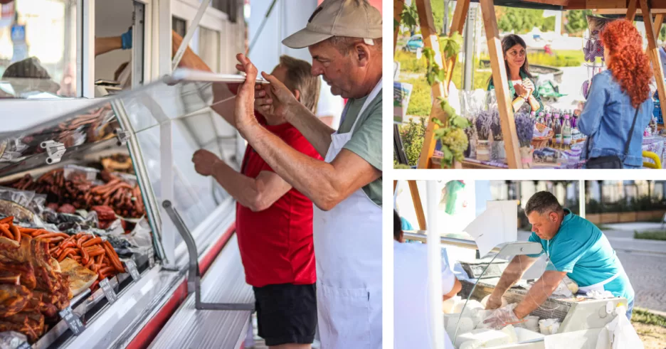 Puteți găsi pe tarabe produse de calitate din tot județul Bihor: legume din Borș și Biharia, fructe din Diosig, Săcueni, Roșia și din dealurile Oradiei, produse din carne din Beiuș, brânzeturi din Cubulcut, miere din Șișterea, Diosig și zona Podgoria, turtă dulce din Valea lui Mihai, siropuri și gemuri din Beiuș și Oșorhei, produse de lavandă din Calea Mare și Miheleu și flori din Satu Nou și Borș.