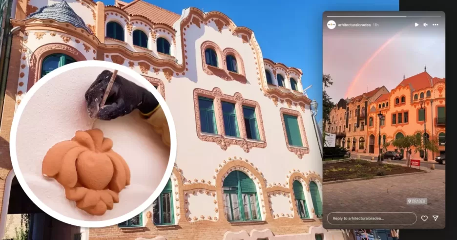 Pagina Arhitectural Oradea de pe Instagram au postat acum câteva zile un videoclip scurt din timpul restaurării, mai exact a unor detalii ornamentale din ipsos, 928 la număr. Vezi clipul aici.