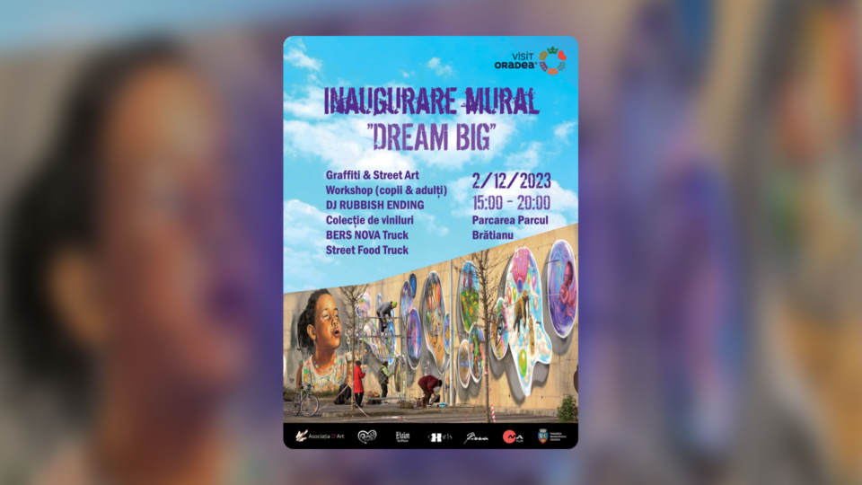 În data de 1 noiembrie, orașul Oradea a devenit martorul unui proiect de artă urbană de anvergură, denumit „Dream Big”. Acesta a luat naștere în parcarea Parcului Brătianu, unde un colectiv de patru artiști locali remarcabili – Roxana Netea, Cristian Sabău, George Hociung și Ervin Racz – a transformat un spațiu obișnuit într-o operă de artă vibrantă și inspiratoare. Muralul, care se întinde pe o suprafață impresionantă de 660 de metri pătrați, este menit să fie o sursă de inspirație și un îndemn la curaj pentru tineri și adulți deopotrivă, încurajându-i să viseze fără limite.