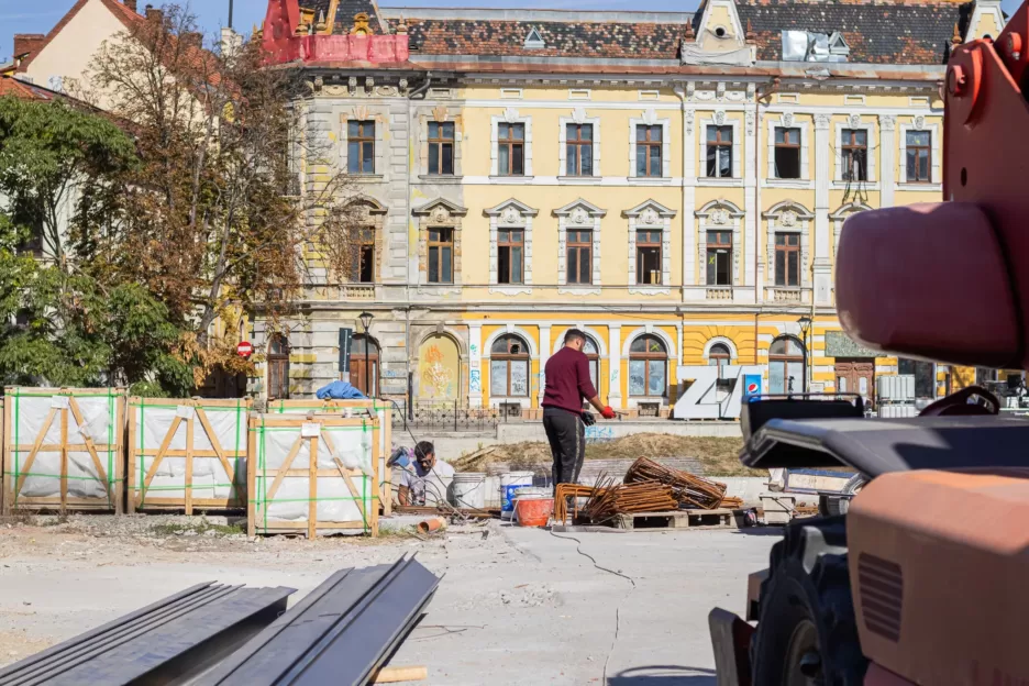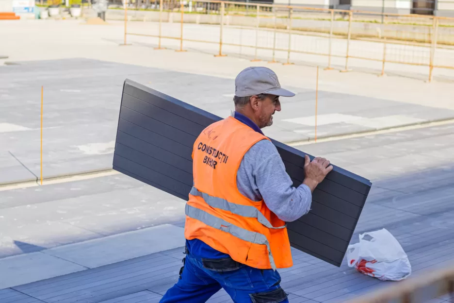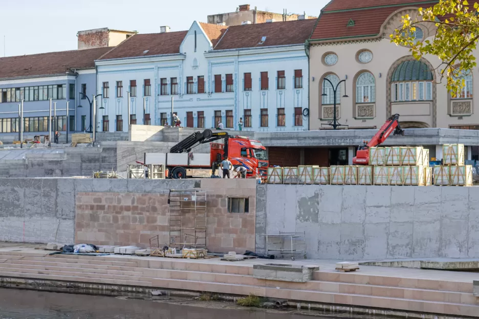 Continuă lucrările de la viitoarea piațetă de pe malul Crișului, cu acces de pe strada Independenței. Vezi imagini din șantier.