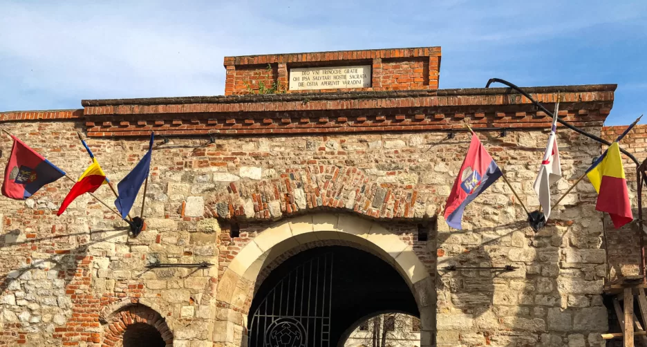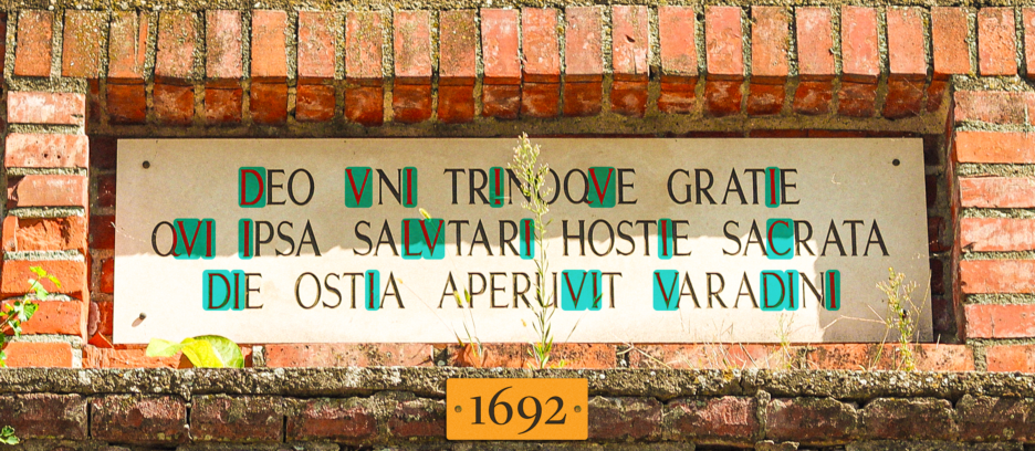 Inscripția de la poarta de vest a Cetății Oradea adresează mulțumiri lui Dumnezeu. Textul ascunde în secret anul 1692 în care Cetatea a fost eliberată de ocupația turcă.