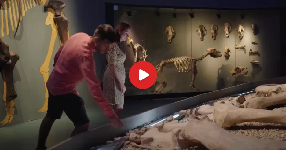 Fii sigur că vezi în video cum Mircea Bravo atinge unul din scheletele din muzeul nostru Orădean.