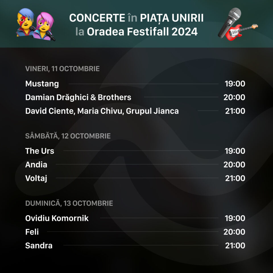 - 19:00 – 21:00 – Concert Simfonic FestiFall, Orchestra Filarmonicii de Stat Oradea