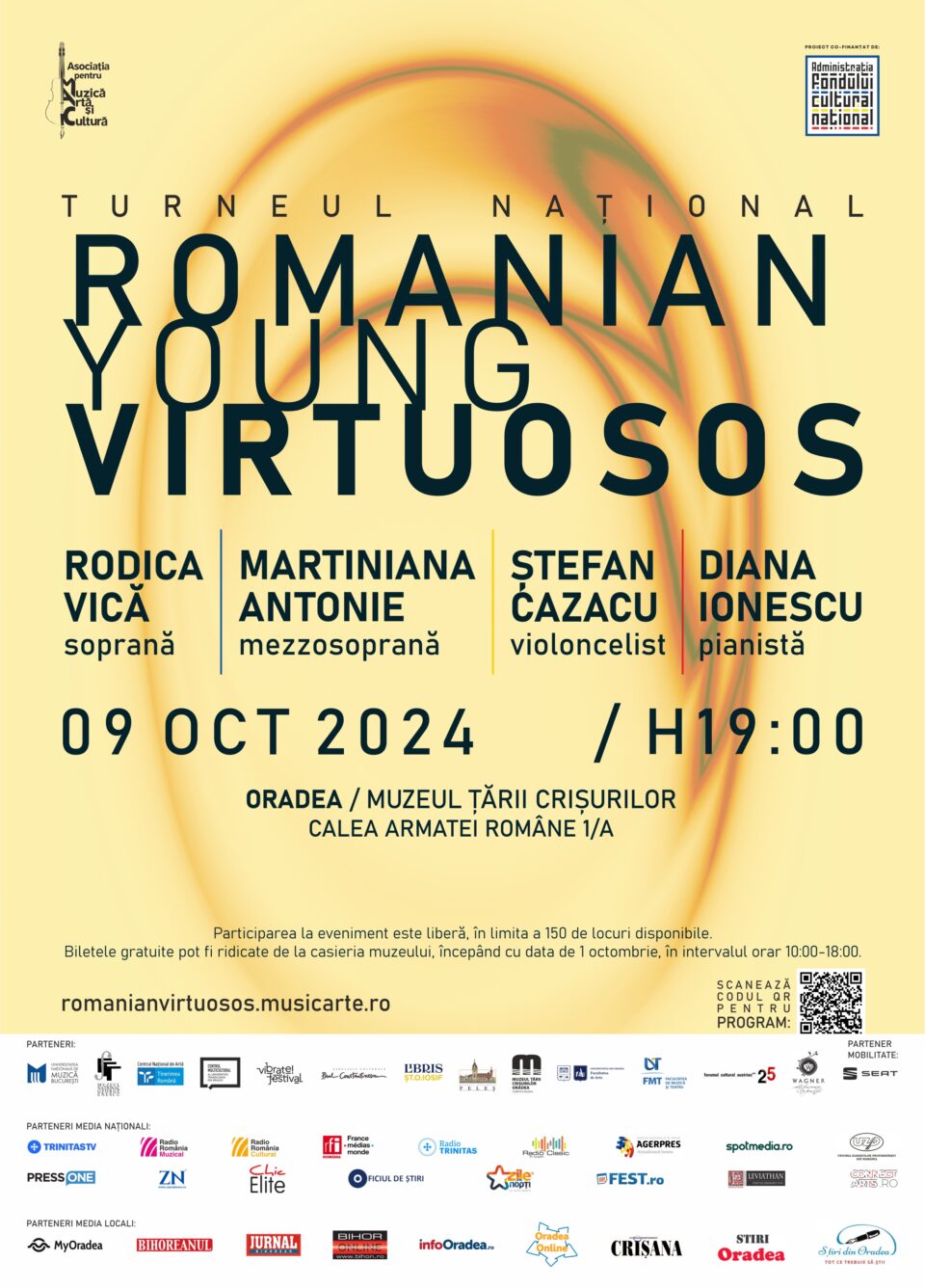 Asociația pentru Muzică, Artă și Cultură organizează turneul național ROMANIAN YOUNG VIRTUOSOS, care-i va aduce pe scenă pe Rodica Vică, Martiniana Antonie Ștefan Cazacu, Diana Ionescu, Dana Deac și Vlad Maistorovici.