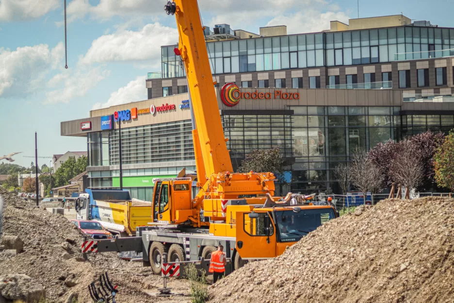 Imagini filmate de la mega-șantierul din Centrul Civic în Oradea, județul Bihor. Este surprins și primarul Florin Birta în imagini, discutând cu șefii de șantier. Vezi filmări cu mașinăriile și muncitorii de aproape.